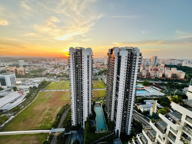 The unit enjoys abundant Natural Ventilation, Breezy throughout the day, and Super Bright with no afternoon sun. Large windows open to Beautiful views all around the apartment, creating a bright and airy atmosphere. RARE ALERT : You get to have the pleasure of witnessing both sunrise and sunset everyday from your Living & Bedroom Balconies…..
